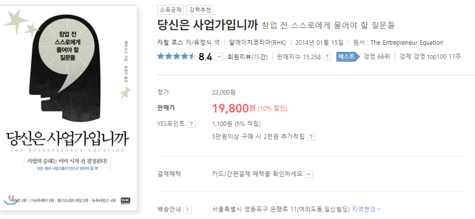 얼마 전에 읽었던 책 중에 하나를 리뷰하고자 합니다. 당신은 사업가입니까 라는 책입니다. 많은 분들이 경기가 어렵다 보니 직접 회사에서 나와서 무언가 사업을 해보려고 하시는 분들이 많습니다.